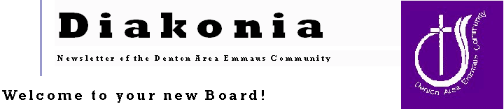 John McDonald, Comm./Data Base 817-430-1996 mcdjohn@aol.comJoy Morrison, Week-End Events 972-625-7504 jmorrison@ci.the-colony.tx.usCindy Shoemaker, Comm./Data Base972-317-8774 ccccshoe@covad.netcshoemak@harcourt.comRoy Wells, Asst. Lay Dir./Supplies972-370-6005 roy.wells@st.comCLERGYJohn Featherston, Spiritual Director972-625-7073 john@tcchurch.orgJoe Zinser, Asst. Spiritual Director972-539-2715 revjrz@attbi.comLynda Schupp, Asst. Spiritual Dir.972-539-9836 l.schupp@gte.net